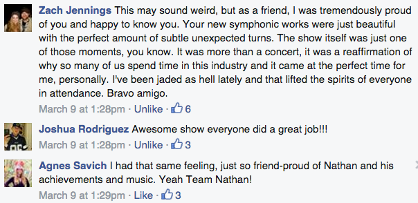 Not a week goes by (2 months later) without running into someone who tells me it was amazing how we pulled off hip-hop and orchestra!? Or how Dana Falconberry made them cry. Or how they had always dreamt of hearing Shearwater songs backed with a full array orchestral instruments. And to think we are all deeply moved by something as simple yet complex as music. So here I am. Living life as a dreamer. An adventurer. A risk taker. A COMPOSER who just had two different symphonic works premiered in less than a month! And I have two more coming in Europe in May and June. Heck ya I’m excited about it because there were days when the rejections letters bore heavily. While the New York Phil isn’t knocking on my door (yet) and most of my opportunities seem self made, I really wouldn’t have it any other way. This is my adventure and like the title of my blog says…I got do it my F’in self…why? That’s right! Because nobody else is gonna to do it for me.